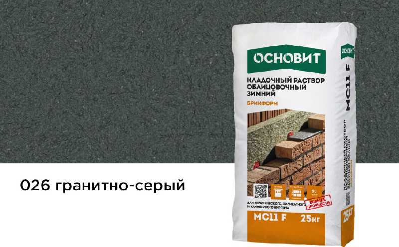 Кладочный раствор ОСНОВИТ БРИКФОРМ МС11 F зимний предназначен для кладки стен из облицовочного кирпича с водопоглощением до 12% с возможностью расшивки швов в момент укладки при температуре окружающей среды и основания от -10 до + 10°С.